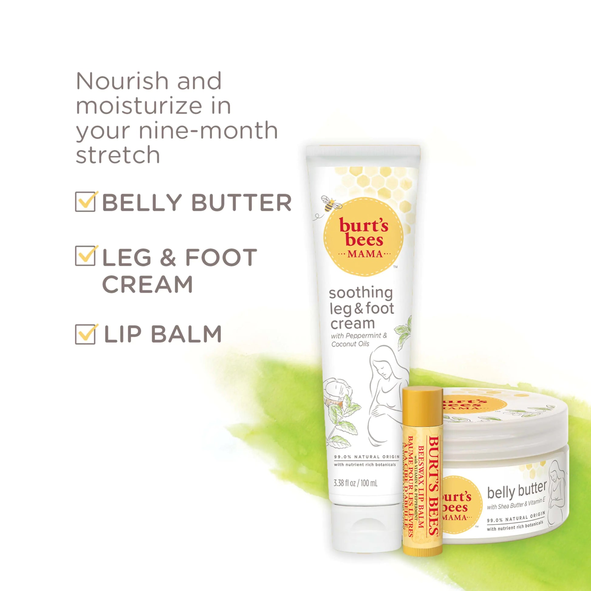 Burt's Bees Pregnancy Essentials Gifts Set, 3 Giftable Baby Shower Products & Must Have Baby Registry Items, Nourishing Skincare - Mama Belly Butter, Original Lip Balm, Leg & Foot Cream Mama Pregnancy Set 3 Count (Pack of 1)