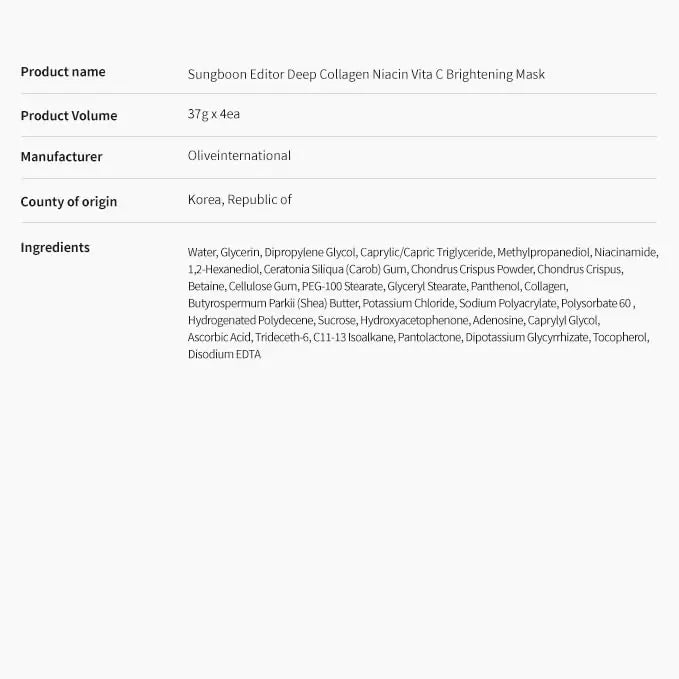 Deep Collagen Niacin-Vita C Brightening Overnight Mask 37gx4ea | The real collagen 2,160,000ppb | Facial Hydrogel Masks with low molecular weight collagen for elasticity and dark spot