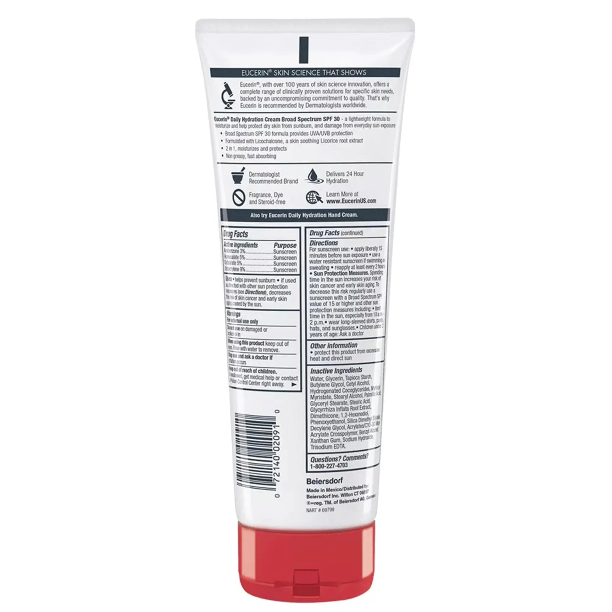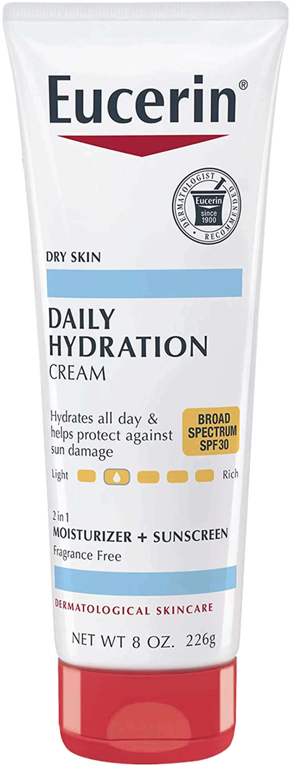 Eucerin Daily Hydration Broad Spectrum SPF 30 Sunscreen Body Cream for Dry Skin, Fragrance Free Sunscreen Moisturizer, 8 Oz Tube